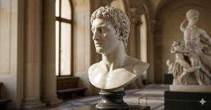 一幅逼真的照片 展示了由闪耀大理石制成的、极其精细的该主题雕塑头像