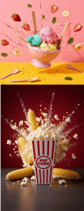 在充满现代感的场景中拍摄这款产品,并搭配出极具冲击力的、动感十足的元素排列,这些关键成分新鲜且原始,四处飞舞环绕在产品周围,以此彰显其新鲜度和营养价值。
