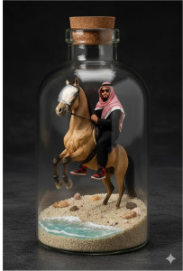 餐桌中央摆放着由塑料微粒构成的信用卡,餐具切割处渗出黑色油污,背景是被污染的海洋与窒息的海鸟。采用超写实绘画手法,将抽象数据转化为具象场景。