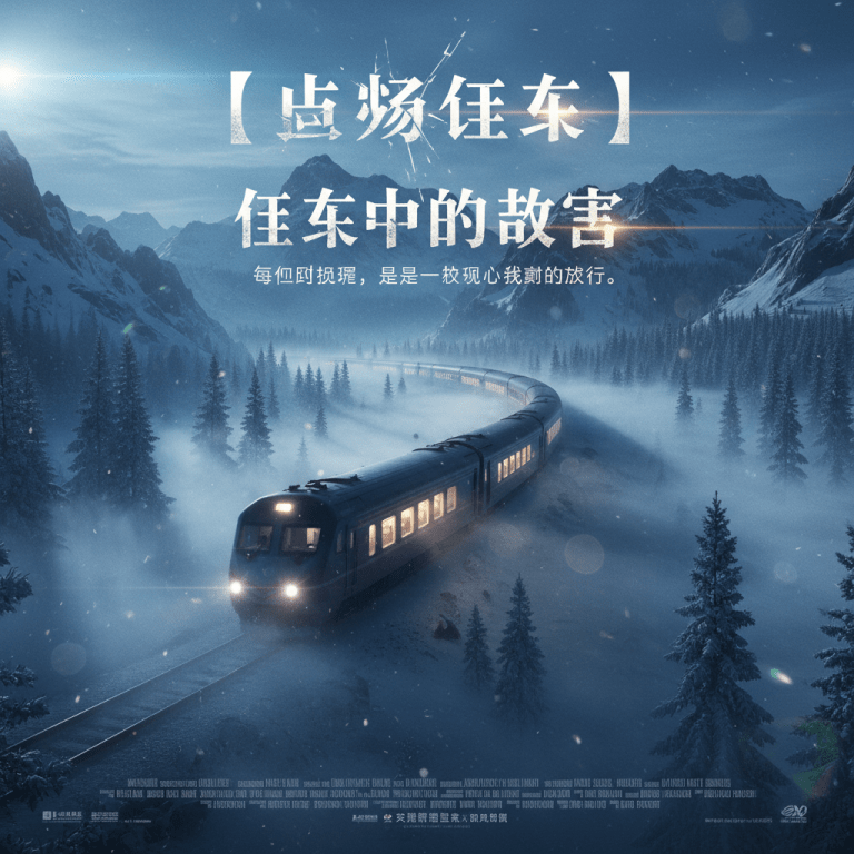 “[故乡列车 ]” — 超逼真、高清风格的电影海报设计。根据电影的标题捕捉一个充满戏剧性和情感的场景。使用高开尔文色温来消除黄色调,偏爱冷色调、蓝色调或中性白色。添加体积雾、锐利阴影和深景深。模拟具有柔和泛光、细微镜头光晕和胶片颗粒的电影镜头。