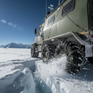 一辆越野车在冰雪世界里穿行 丰富的细节